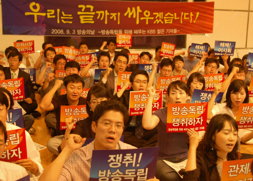 KBS 입사 9년차 이하 기자 1백70명은 '방송의 날'인 3일 서울 여의도 KBS본관 1층 ‘민주광장’에서 기자회견을 열고 최근 이병순 사장의 임명 등 KBS 사태와 관련해 공영방송을 지키는 싸움에 앞장서겠다고 밝혔다.