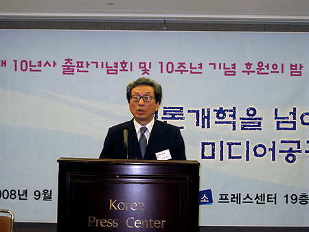 최문순 민주당 의원은 축사에서 “지난 10년간 언론개혁시민연대의 중추적 역할로 (2008년 5~6월) 시청 앞에 모인 국민들이 언론의 문제를 인식하게 됐다”면서 “앞으로 10년이면 전 국민의 문제로 확대될 것”이라고 말했다.