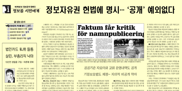 세계일보가 지난 23일부터 스웨덴, 핀란드, 영국, 미국, 일본 등 선진 5개국의 정보공개제도를 집중 조명해 눈길을 끌고 있다.