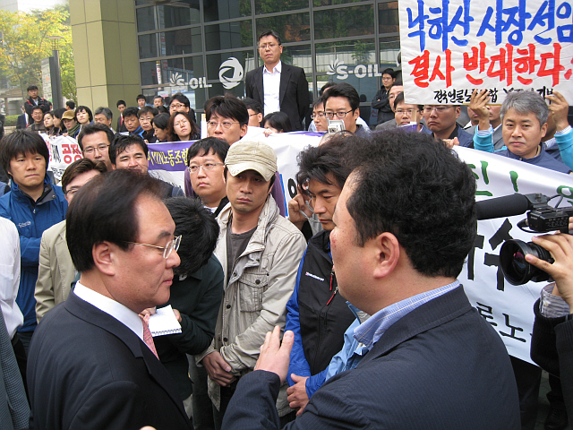 구 사장은 7명의 경영기획실 간부 및 직원의 보호를 받으며 자리를 벗어났다. 그는 얼마 전부터 노조가 회사 차량을 타는 것도 제지하자, 사옥으로부터 2분여 떨어진 곳에서 차를 타고 떠났다.