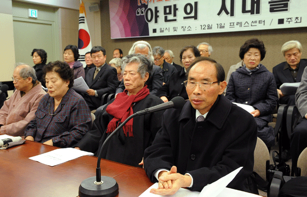 | ▲ 국가보안법폐지국민연대가 국보법 제정 60주년을 맞아 1일 오전 서울 중구 프레스센터에서 기자회견을 열고 '국가보안법 폐지'를 촉구하고 있다. 이들은 "국가보안법 60년은 씻을 수 없는 야만의 깊은 상흔을 한민족 구성원 모두에게 남겼다"며 "국가보안법이 지배하는 야만의 시대에는 인간의 양심과 자유, 민주주의는 처참하게 유린될 수밖에 없었다"고 주장했다. | ||