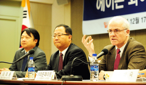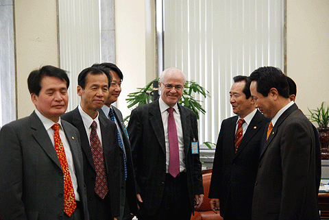 | ▲ 16일 오전 국회를 방문한 에이든 화이트 IFJ 사무총장 일행이 민주당 의원들을 만나 YTN 사태 해결책을 찾기위한 간담회를 했다. | ||
