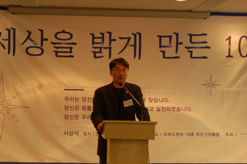 이외 미디어 관련 시상자로는 ‘올해의 인물’ 부문에 다음 아고라, 네티즌 미네르바, 촛불소녀 등이 선정됐다. ‘환경․기후 변화’ 부문에서는 올 한해 환경캠페인 ‘세이브 어스(Save Earth)’를 벌인 중앙일보의 강찬수 기자가 상을 받았다.