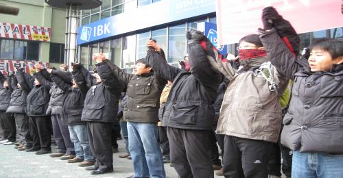 ▲ 7일 서울 남대문로 YTN 사옥 앞에서 전국언론노동조합 소속 조합원 1천여 명이 구본홍 YTN 사장 사퇴를 촉구하며 YTN 사수를 위한 ‘인간 띠잇기’ 행사를 열고 있다. |