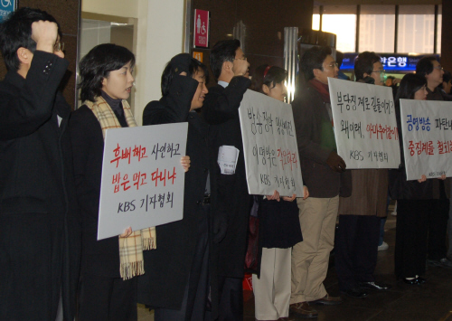 KBS기자협회는 19일 오후 9시 30분 보도국 기자 총회를 열고 제작거부 돌입 찬반투표를 벌인 결과 찬성률 95.4%를 기록, 제작거부에 들어가기로 했다고 밝혔다.