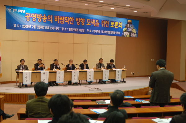 이날 토론회에서는 지성우 동국대 교수가 발제자로, 강재원 동국대 교수, 이선재 KBS 대외정책팀장, 양문석 언론연대 사무총장, 황근 선문대 교수 등이 토론자로 참여했으며 KBS을 규제할 ‘공영방송위원회’의 설립과 TV수신료 인상와 재원 구조, MBC의 정체성 문제 등을 놓고 토론을 벌였다.