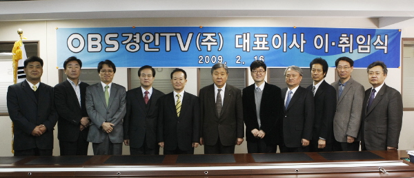 OBS는 16일 오전 10시15분 오정동 사옥 B동 2층 회의실에서 사장 이·취임식을 열었다.