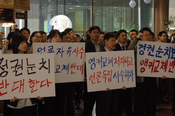MBC 기자들은 MBC 방송센터와 경영센터를 번갈아가며 피켓시위를 벌이고 있으며 14일부터는 신입기자와 일부 앵커, 뉴스편집기자들도 제작거부에 참여하고 있다. MBC노조는 경영센터 9층 사장실 복도를 점거해 무기한 농성에 들어갔으며 지역 MBC노조 19개지부 조합원들은 서울로 뉴스 송고를 중단했다.