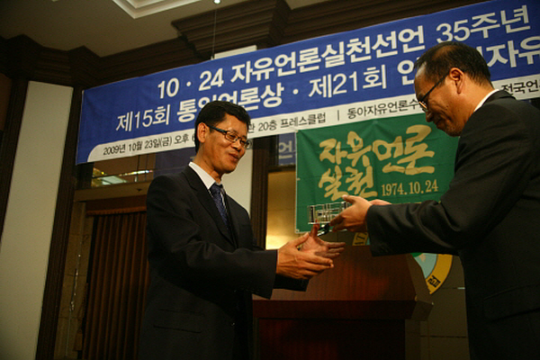 10·24 자유언론실천선언 35주년 기념식 및 제15회 통일언론상·제21회 안종필자유언론상 시상식이 23일 오후 6시 서울 중구 프레스센터 20층에서 열렸다.