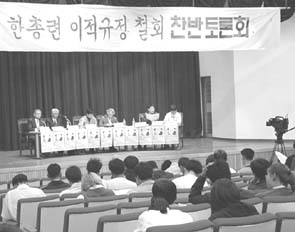 오후 5시부터 4시간여 동안 진행된 토론회는 비한총련 계열 총학생회장, 공안당국 관계자 등이 섭외를 거부함에 따라 김승교 변호사, 기세문 광주전남양심수후원회 회장 등 한총련 이적규정 철회를 요구하는 진영의 질의와 우 팀장의 답변이 이어지는 형식으로 진행됐다.