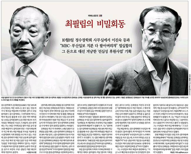 정수장학회가 보유한 MBC 지분 30%와 부산일보 지분 100%를 매각해, 그 돈으로 부산·경남 지역 대학생 장학금 지원 등 대선을 겨냥한 '선심성 후원사업'을 기획하고 있다는 내용이었다.