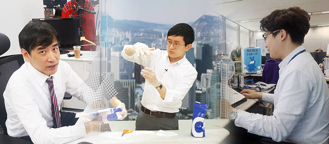 “안되겠어. 리얼리티를 더 살려야겠어.” 셔츠에 마이크를 끼우고 카메라를 보며 거듭 멘트를 수정한다. 염화칼슘, 베이킹소다, 커피가루 등 테이블에 놓인 재료를 들고 어떻게 표현해야 더 자연스러울지 맞춰본다. 방송경력 6년차인 그이지만 카메라 앞에서는 긴장을 놓을 수 없다. 지난 10일 서울 상암동 JTBC 본사 1층 오픈스튜디오. 이윤석 JTBC 기자는 디지털뉴스룸의 새로운 아이템인 ‘뉴스실험실’ 촬영을 위해 카메라맨과 호흡을 맞추며 분주히 움직였다. 그는 “뉴스실험실은 공개되자마자 3일 만에 도달률 300만을 넘기며 페이스북의 새로운 혁신 콘텐츠로 떠오르고 있다”고 소개했다.