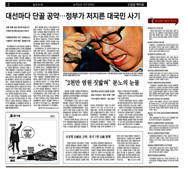 매일신문은 2면에서 “2000만 남부권 시도민들이 그토록 간절히 염원하는 영남권 신공항 건설이 21일 정부 발표로 백지화됐다”며 “2011년 3월에 이어 5년여 만에 또다시 신공항 건설이 좌절된 것이다. 수도권과 지방이 두루 함께 잘 사는 대한민국을 만들기 위한 최소한의 요건인 영남권 신공항 건설을 정부는 외면하고 말았다”고 전했다.