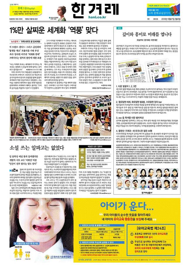 한겨레가 27일부터 새로운 지면을 선보였다. 지난 4월 지면개편TF를 구성해 몇 차례 회의를 거친 후 구체적인 안을 에디터들과 협의한 결과물이다.