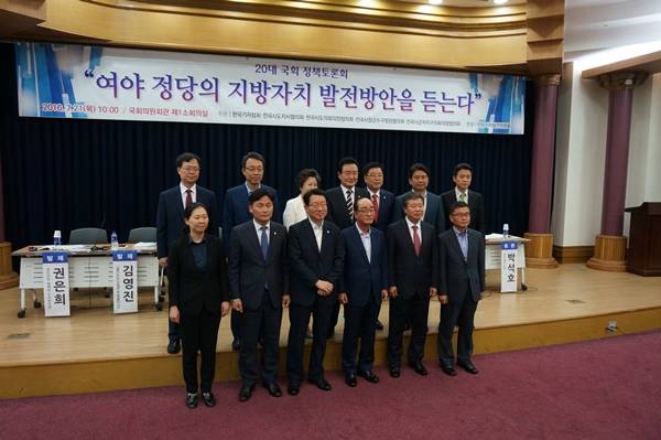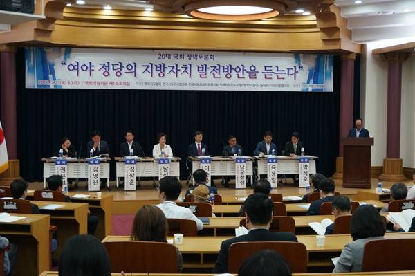 ‘여야 정당의 지방자치 발전방안을 듣는다’ 토론회에서 참석자들은 지방자치 발전을 위해 지방재정을 확충하고 대통령소속 지방자치발전위원회가 2014년 마련한 ‘지방자치발전 종합계획’을 20대 국회에서 처리해야 한다고 한목소리를 냈다.