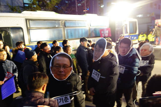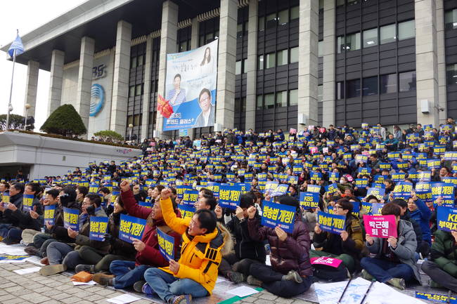 새누리당 당사로 자리를 옮긴 KBS 구성원들은 언론노조 MBC본부, 국민일보 지부, 지역에서 올라와 집회에 참여한 기자들과 합류해 현 시국에 대한 정부여당의 책임을 묻고, 미방위 위원장과 여당 간사를 각각 맡고 있는 신상진·박대출 의원을 성토하고 나섰다.