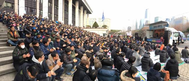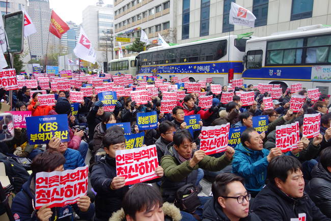 대설(大雪)을 지난 8일 오후 2시 서울 여의도 한국방송공사 본관 앞으로 KBS구성원들이 뛰쳐나왔다. 여느 때 같으면 한창 방송을 위해 뛰고 있을 시간, KBS노동조합과 언론노조 KBS본부 등 양대 노조 조합원 1500여명은 사무실을 박차고 나와 냉기가 올라오는 바닥에 자리 잡았다. 그리고 이 같이 외쳤다.