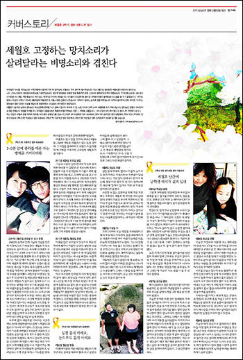세월호 참사 3주기를 맞은 언론은 어떤 방식으로 이를 조명했을까. 가장 많았던 것은 세월호 참사 희생자와 그 유가족들을 조명하는 기획보도였다. 경향신문은 단원고 희생자 ‘성호 누나’ 박보나씨가 회상한 세월호 3년을, 중앙일보는 단원고 희생자 조찬민군의 아버지 조인호씨의 세월호 3주기를, 한겨레는 전남 목포신항에서 15일째 천막을 치고 노숙하는 희생자 엄마 6명의 일기를 전하며 세월호 유가족들의 아픔을 풀어냈다.