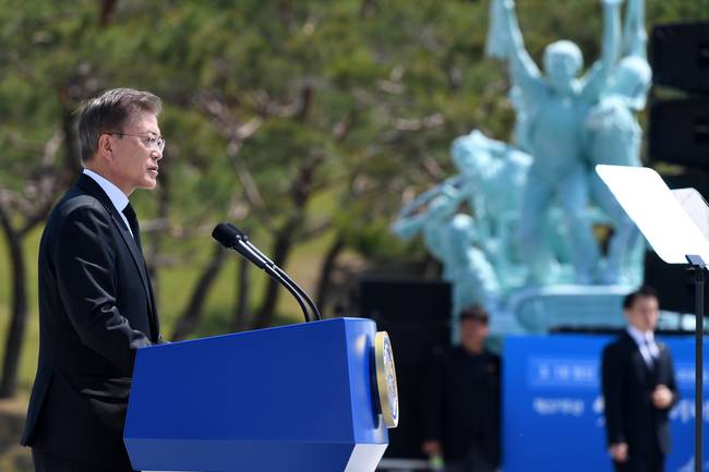 문 대통령은 지난 18일 광주 국립5·18민주묘지에서 열린 5·18 민주화운동 제37주년 기념식에서 "수많은 젊음들이 5월 영령의 넋을 위로하며 자신을 던졌다. 책임자 처벌과 진상규명을 촉구하기 위해 목숨을 걸었다"며 "진실을 밝히려던 많은 언론인과 지식인들도 강제해직되고 투옥 당했다. 오월의 영령들과 함께 이들의 희생과 헌신을 헛되이 하지 않고 더 이상 서러운 죽음과 고난이 없는 대한민국으로 나아가겠다"고 말했다.