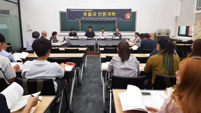 특히 이날 학술대회에선 ‘촛불과 언론개혁’이라는 주제로 별도의 발표와 토론이 진행됐다. 고승우 80년해직언론인협의회 공동대표가 ‘촛불과 사회변혁, 언론의 정상화’를 주제로 기조발제를 했고 정영하 MBC 전 노조위원장과 김동찬 언론개혁시민연대 사무처장이 각각 ‘공정방송 추진과 해직·복직 투쟁’ ‘새 정부와 언론 적폐청산 과제’를 발표했다.