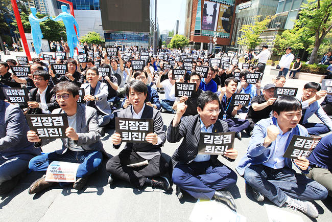 한국기자협회는 4일 성명을 내고 MBC의 미래를 위해 김장겸 사장의 퇴진을 요구했다. 기자협회는 “국민이 외면하는 언론으로 추락하는 시간은 한 순간이었고 그 중심에 김 사장이 자리하고 있다”며 “새로운 MBC는 사장의 퇴진에서 시작된다. 개인의 임기에 연연하지 말고 대승적 결단을 내리라”고 촉구했다.