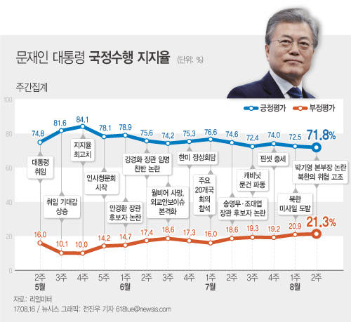 이상돈 의원은 "보는 사람에 따라서는 부족하게 보이는 경우도 있겠지만 일단 인수위도 없이 취임한 대통령이고 그간에 우리 국민들이 대통령에 대해서 가졌던 기대 또는 대통령의 이상적인 역할에 대한 갈증이 있었다"며 "그런 것을 문재인 대통령이 많이 해소시켜 줬다. 국민들한테 만족을 시켰다고 본다"고 밝혔다.