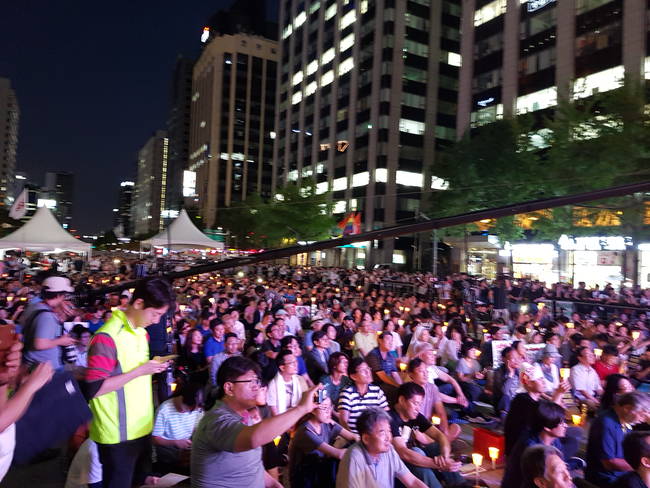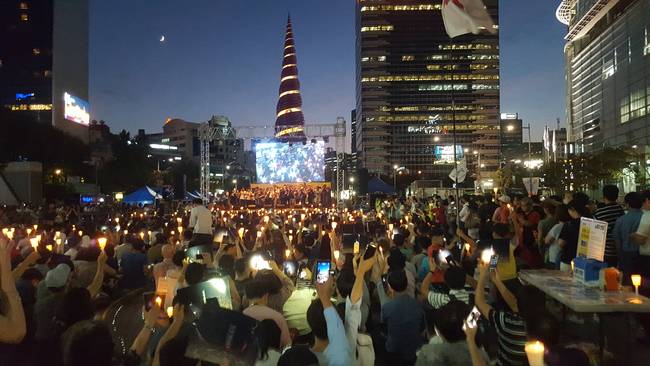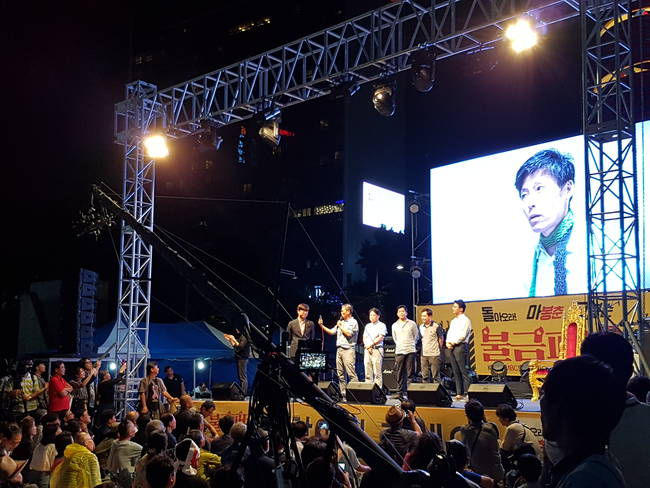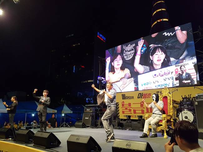 MBC 기자, PD, 아나운서들이 공정방송의 기치를 내걸고 김장겸 사장 등 경영진의 사퇴를 요구하며 제작거부를 하고 있는 가운데, 25일 서울 광화문 청계광장에서 KBS MBC 정상화 시민행동에서 주최한 ‘돌마고(돌아오라 마봉춘 고봉순) 불금파티’ 집회가 열렸다.