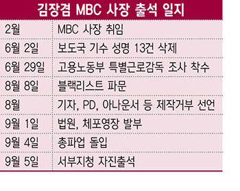 김 사장은 “당당히 조사받고 가겠다”고 밝혔지만 그를 둘러싼 상황은 녹록지 않아 보인다. 고용노동부는 지난 6월 언론노조 MBC본부의 신청을 받아들여 한 달 동안 진행한 MBC 특별근로감독 조사 과정에서 최저임금·퇴직금 일부 미지급, 근로계약서 미교부 등 노동법 위반 사항을 추가로 적발한 것으로 알려졌다. 이 때문에 ‘노동조합 및 노동관계조정법’ 제81조 부당노동행위 혐의를 받고 있는 김 사장의 처벌 수위가 예상보다 높을 것이란 전망도 나오고 있다.