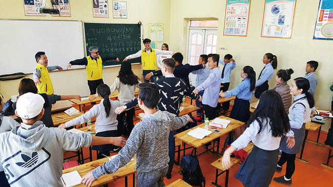 지난 22일 몽골 날라이크 지역의 골롬트 종합학교 2층 교실에선 앳된 얼굴의 중등반 학생들이 송창식의 ‘가나다라’를 부르고 있었다. 한글 자음과 모음, 숫자들의 발음을 익힌 후 심화학습 차원에서 부르는 노래였다. 학생들은 팔을 들어 어깨춤을 추는 기자들을 따라 힘차게 노래를 부르며 춤을 췄다. 막힘없이 가사를 읊은 학생에게 주어지는 선물에 너도나도 노래 발표를 하는가 하면 3시간여의 수업이 끝난 후에도 교실을 떠나지 않고 기자들과 ‘셀카’를 찍는 등 수업을 즐겼다.