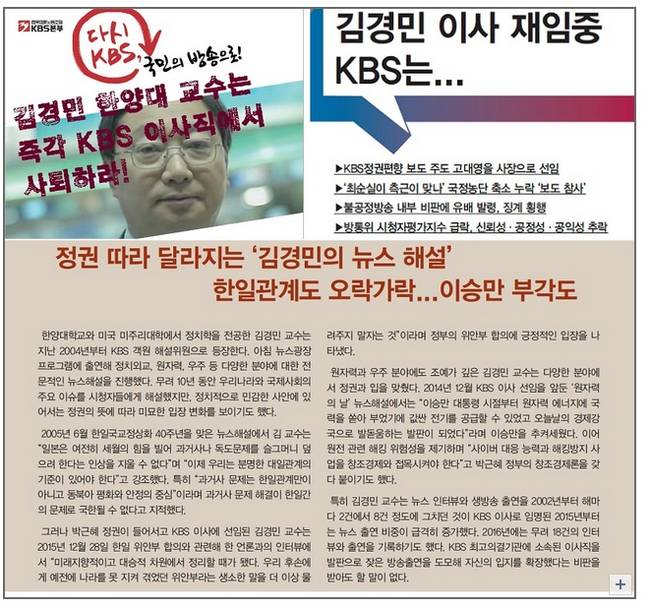 김경민 KBS이사(한양대 정치외교학과 교수)가 방송통신위원회에 사퇴서를 제출했다. 양대 공영방송사 총파업 가운데 구 여권 추천 공영방송 이사가 스스로 자리에서 물러나는 일이 또 다시 벌어지면서 큰 파장이 예상된다.