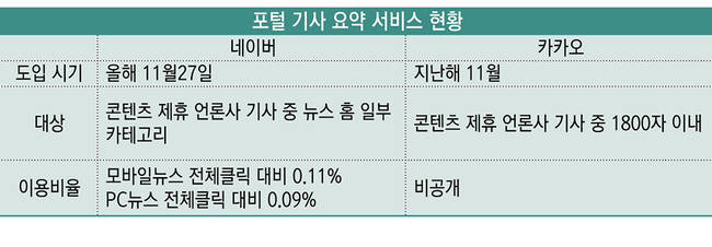 네이버 관계자는 “현재 베타 서비스로 품질이 낮을 수 있으나 인공지능 특성상 점차 고도화 될 것”이라며 “이용자와 언론사 피드백을 신중하게 살펴 영역 확대 등을 고려할 방침”이라고 밝혔다. 카카오 관계자도 “기사는 기본적으로 다 보이고 요약을 원하는 이용자만 선택하는 부가기능”이라며 “기존 서비스 사용성을 해치는 게 아니라 부정적인 건 없을 것 같다”고 말했다.