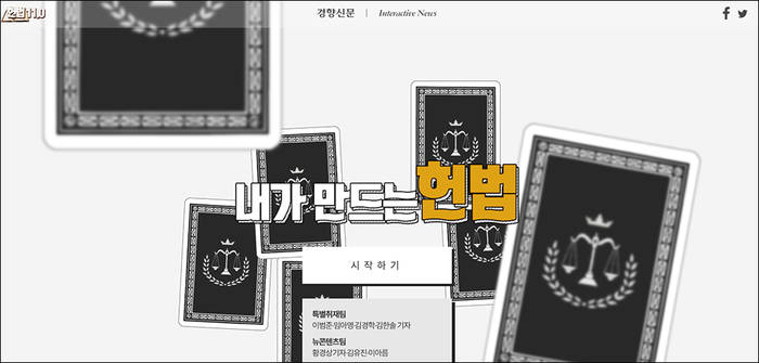 뉴콘텐츠팀 소속 황경상 기자는 “취재팀에서 신년을 맞아 헌법 기획을 준비하고 있는데 단순히 기사를 나열하기보다 고양이가 마을 사람들을 만날 때마다 기사를 띄우는 것이 덜 딱딱할 것 같아 이 같은 콘텐츠를 준비 중”이라며 “이 외에도 가장 중요하게 생각하는 권리가 무엇인지 스스로 골라보는 ‘내가 만드는 헌법’도 제작하고 있다”고 말했다. 이 콘텐츠들은 1월1일 신년기획이 연재됨과 동시에 사이트에 공개됐다.