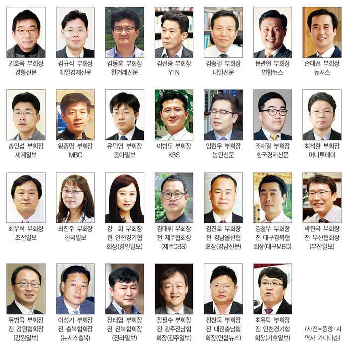 부회장에는 강희(경인일보), 권호욱(경향신문), 김규식(매일경제신문), 김대휘(제주CBS), 김동훈(한겨레신문), 김선중(YTN), 김종필(내일신문), 김진호(경남신문), 김철우(대구MBC), 문관현(연합뉴스), 박진국(부산일보), 손대선(뉴시스), 송민섭(세계일보), 왕종명(MBC), 유덕영(동아일보), 유병욱(강원일보), 이병도(KBS), 이성기(뉴시스충북), 임현우(농민신문), 장태엽(전라일보), 장필수(광주일보), 정찬욱(연합뉴스대전충남), 조재길(한국경제신문), 최석환(머니투데이), 최우석(조선일보), 최유탁(기호일보), 최진주(한국일보) 기자가 임명됐다.