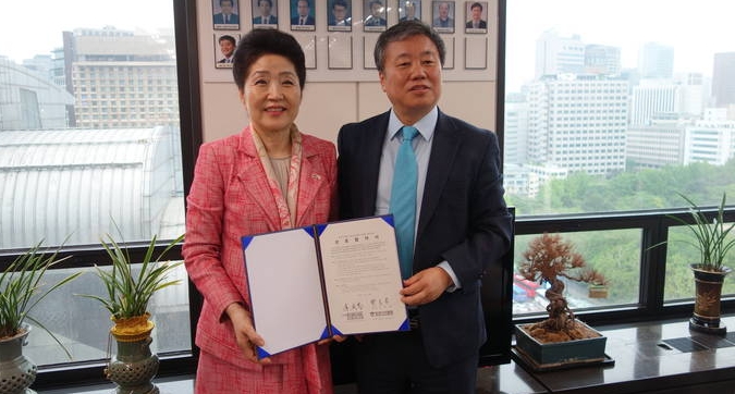 한국기자협회(회장 정규성·오른쪽) 사랑나눔봉사단과 종이문화재단(이사장 노영혜·왼쪽)이 지난 16일 서울 중구 기자협회 사무실에서 상호 업무협약을 맺고 국내외 봉사활동에 함께 나서기로 뜻을 모았다.