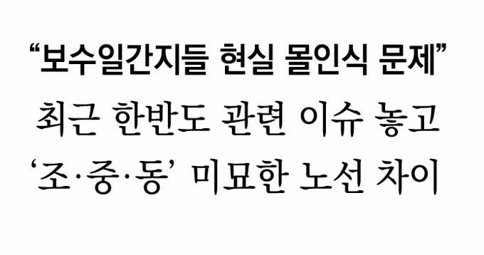 잇단 남북·북미정상회담 개최와 지방선거 결과에서 보듯 우리 사회는 현재 ‘거대한 변화’의 흐름 속에 있다. 주류 미디어의 영향력이 약화되고 보수언론이 균열의 조짐마저 보이는 것은 필연적인 결과다. 동아·조선·중앙일보는 최근 한반도 문제에 대해서도 미묘한 노선 차이를 보이고 있다. 보수지의 한 기자는 “내부적으로 특별히 논조나 뭔가가 바뀌었다기 보다는 시대가 달라졌으니까, 그런 시대를 반영하는 기사도 변할 수밖에 없는 것 아닐까”라고 말했다.
