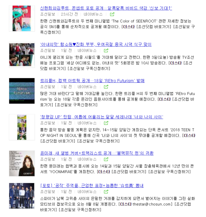 조선일보는 올해 1월부터 지난 3일까지 총 4890건의 더 스타 기사를 네이버에 전송했다. 벌점이 누적되는 3월부터를 기준으로 삼더라도 3573건, 6월 한 달간 894건의 더 스타 기사<사진>를 송고했다. 이 같은 기사 송고는 ‘미계약 매체 기사 전송(제 3자 기사 전송) 조항을 위반한 것으로 제휴평가위의 제재기준에 해당한다. ‘제 3자 기사전송’의 경우 자사의 1일 기사 송고량의 5% 이상인 경우 단계별로 1점에서 10점까지 벌점을 부과할 수 있다. 미디어스 집계에 따르면 6월 한 달만 해도 이미 조선일보의 누적벌점은 58점이었다. 제휴평가위 관계자는 “최근 이 같은 사실을 인지하고 자체적으로 벌점을 집계해 조선일보에 통보했다”며 “제재소위(제 2소위) 안건으로 올라간다”고 말했다.
