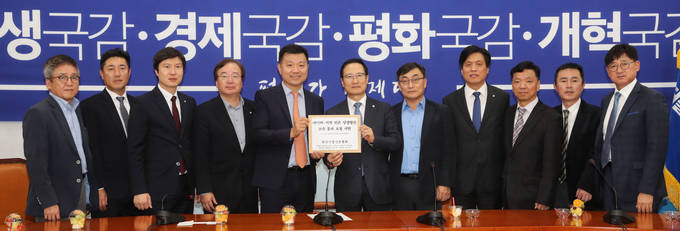 한국지방신문협회 소속 9곳의 지역신문사(부산일보, 강원일보, 경남신문, 경인일보, 광주일보, 매일신문, 대전일보, 전북일보, 제주신보) 편집국장단이 지난 15일 국회를 방문해 더불어민주당, 바른미래당, 자유한국당 등 원내대표와 면담을 갖고 <포털의 위치 기반 뉴스서비스와 지역 뉴스 의무 노출 의무화 법안>의 통과를 요청하는 서한을 전달했다. 이들 지역신문사들은 지난달 27일부터 법안 통과를 촉구하는 ‘릴레이 공동 칼럼’을 게재하고 있다. 한국지방신문협회 제공