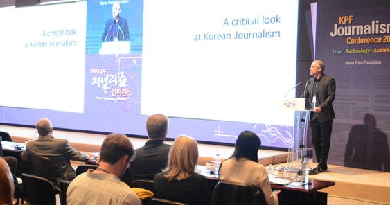 그는 “한국 언론은 클릭을 유도하는 제목, 어떤 키워드를 사람들이 많이 봤나 확인하면서 기사 쓰고, 그러다보니 사실인지 아닌지는 다음 문제고, 정확한 뉴스보다는 빠른 뉴스를 중요하게 생각하고, 익명에 기댄 보도가 많다고 봤다”고 지적했다.