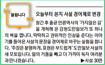 김 논설실장은 “다른 언론사에서 하지 않은 시도이기 때문에 어투를 바꾸는 데 부담도 있었다”며 “독자와 함께 생각할 여지를 준다는 점에서 독자들 반응도 긍정적이다. 이런 변화가 언론계에 확산됐으면 하는 기대가 있다”고 덧붙였다.
