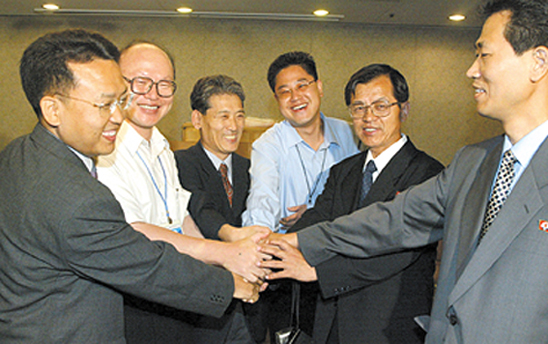 이날 회담에는 기자협회측에서 남북기자교류특위 정일용(연합뉴스 논설위원) 위원장과 임을출(한겨레21 기자) 부위원장 등 4명이 대표단으로 참석했다. 조선기자동맹의 위임을 받아 참석한 북측 대표단은 엄일규 노동신문 편집위원을 단장으로, 리민천 외국문출판사 부장, 전성철 조선중앙통신 기자, 김상호 기록영화촬영소 기자 등 4명으로 구성됐다. 정일용 위원장은 “남북 공동행사에서 언론이 부문별 모임으로 공식 포함돼 논의를 가진 것은 이번이 처음”이라며 “기자대회 개최 등 제안사항에 대해 긍정적인 답변을 기대한다”고 말했다. 김상철 기자 ksoul@journalist.or.kr