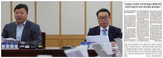 법무부 검찰 과거사위원회가 2009년 ‘장자연 사건’ 수사 당시 조선일보가 수사에 압력을 행사한 것은 사실이라고 밝혔다. 다만 공소시효 만료 등의 이유로 수사 권고는 하지 않았다. 조선일보는 “일부 인사의 일방적 주장에 근거한 것”이라며 “명백한 허위”라고 반발하고 있다.