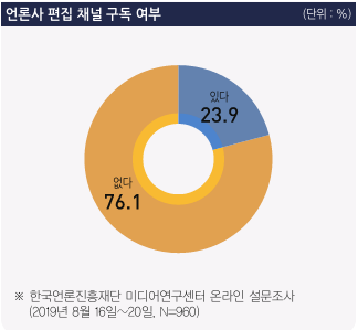 성인 10명 중 7명은 네이버 모바일에서 ‘언론사 편집 채널’을 구독하지 않은 것으로 나타났다. 한국언론진흥재단 미디어연구센터가 29일 발간한 ‘포털 등의 알고리즘 배열 전환 이후 모바일 뉴스 이용 행태 보고서’에 따르면 조사응답자 1000명 중 76.1%는 언론사 편집 채널을 구독한 적이 없다고 답했다.