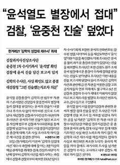 해당 기사에서 한겨레는 "윤석열 검찰총장이 김학의 전 법무부 차관의 스폰서였던 건설업자 윤중천씨의 별장에 들러 접대를 받았다는 윤씨의 진술이 나왔으나 추가 조사 없이 마무리된 것으로 드러났다"고 보도했다. 그러나 윤 총장은 보도 내용을 전면 부인하며 이를 취재·보도한 한겨레 기자를 명예훼손 혐의로 고소했다.