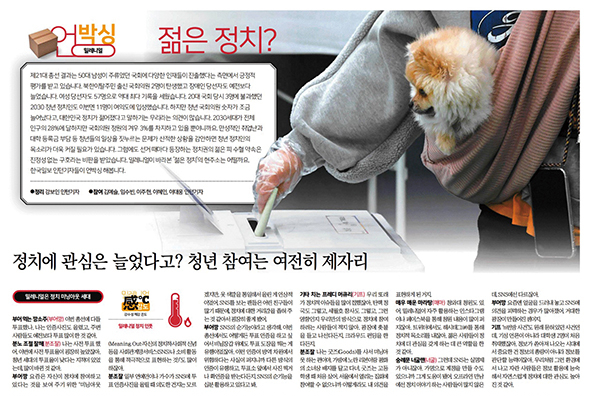 연합뉴스는 독자팀 인턴 기자들이 담당하는 ‘인턴액티브’를 연재하고 있다. 기성 언론에서 소외됐던 10~20대 독자들의 관심을 끌 만한 이슈 거리에 접근하고 현장성이 강조된 기사가 필요하다는 취지에서다. 실제로 인턴 기자들은 <연애·성관계·결혼·출산 모두 거부…‘4B’를 아시나요>, <정관수술 고민하는 20대 남성들> 기사 등을 통해 기성세대가 인식하지 못하는 청년 담론을 소개하고, ‘청각장애 공시생’, ‘키오스크 교육받는 노인들’ 등 20대가 주목한 소수자의 목소리도 전한다. 지난해 1월 시작한 인턴액티브는 연재 100회째가 넘은 연합뉴스의 잘나가는 코너이기도 하다. 최현석 연합뉴스 독자팀장은 “인턴액티브 기사들이 주목을 받는 사례가 상당히 많다. ‘4B를 아시나요’ 기사의 경우 하루 연합뉴스 전체 기사 순위에서 1위를 했고, 포털 뉴스에서 1만여건의 댓글이 달리기도 했다”며 “매주 발제 회의에서 인턴기자들이 느낀 사회 문제나 새로운 현상을 발제하면 기성 기자들이 더 생동감 있는 내용이 반영되도록 제안하고 있다”고 말했다.