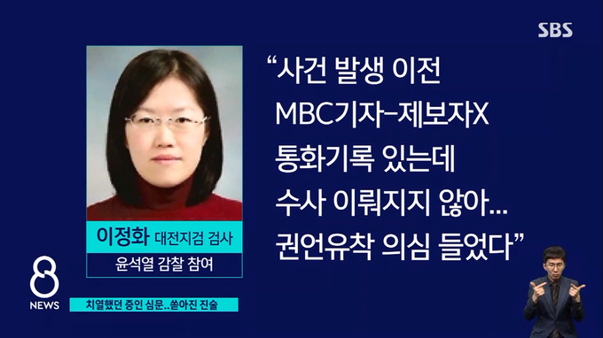 MBC는 SBS 보도 중 법무부 징계위원회에 출석한 이정화 대전지검 검사가 채널A 관련 사건수사가 제대로 이뤄지지 않았다고 전한 부분을 문제 삼았다.