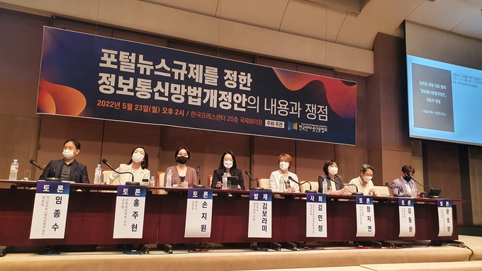 한국인터넷신문협회가 23일 서울 중구 한국프레스센터에서 개최한 ‘포털 뉴스 규제를 정한 정보통신망법 개정안의 내용과 쟁점’ 토론회는 법안을 둘러싼 언론계의 우려와 더 나은 대안을 공유하는 자리였다.