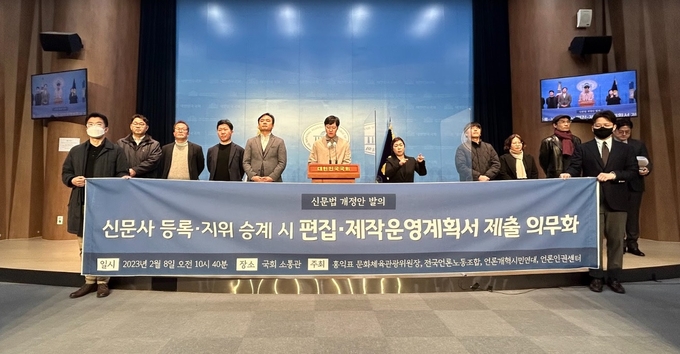 언론노조와 언론개혁시민연대, 언론인권센터도 이날 기자회견에 함께 참석해 “이번에 발의하는 신문법 개정안은 오늘날 위기에 처한 한국 저널리즘을 구하기 위한 최소한의 제도적 장치를 마련해달라는 요구를 담고 있다”며 “국회가 정파와 이익을 떠나서 민주주의와 저널리즘의 진일보를 위한 결정을 내려주길 바란다”고 밝혔다.