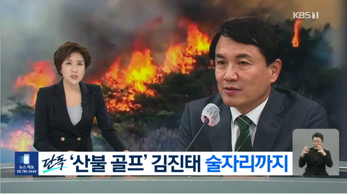 KBS는 지난 7일 오후 3시29분에 출고한 <[단독] 김진태 골프친 뒤 술자리도…18일 산불 때도 ‘골프’> 기사에서 “김 지사가 강원도 홍천과 원주에 산불이 난 3월31일 골프연습장에서 골프 연습을 한 뒤 지인들과 술자리를 가졌고, 강원도 평창군 진부면에 산불이 난 3월18일에도 골프연습장을 찾았다”고 보도했다.