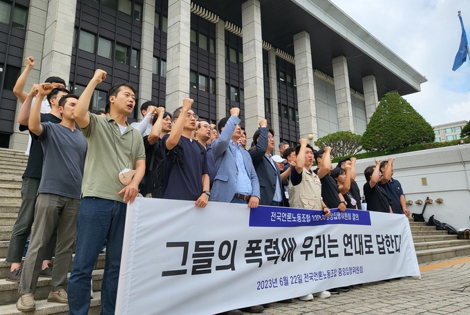 전국언론노조 중앙집행위원회가 정부의 TV수신료 분리징수 추진과 관련해 “KBS를 향한 극우세력의 폭력행위에 합리와 이성, 연대와 단결로 맞서겠다”고 선언했다.