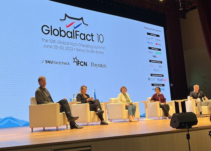 데이니첸코 편집장은 “허위조작정보는 전쟁의 준비단계다. 침공 1년전부터 러시아TV 네트워크에서 우크라이나를 동료로 보는 시선이 사라지며 ‘전쟁이 임박했다’고 짐작했다. ‘우크라이나 테러리스트가 러시아 도시에서 활동을 준비한다'는 주장이 돌아 검증기사를 게재했는데 러시아 언론은 정정보도를 하지 않았다. 전쟁 구실을 만들려는 작전의 일부였던 것”이라며 “많은 국가와 시민들이 보여준 지원에 감사드린다. 우크라이나에 대한 거짓정보를 확인해준 팩트체커들에게도 감사하다”고 했다. 이날 세션 직전엔 주한 우크라이나 대사가 행사장을 찾아 “허위 정보를 통해 러시아는 전쟁의 무대를 만들었다. 기만과 조작으로부터 자신을 보호하는 것은 정말 중시돼야 하고, 이런 측면에서 팩트체킹은 중요한 부분이다. 언론인 뿐 아니라 민주주의에서 매우 중요한 요소”라고 말하기도 했다.